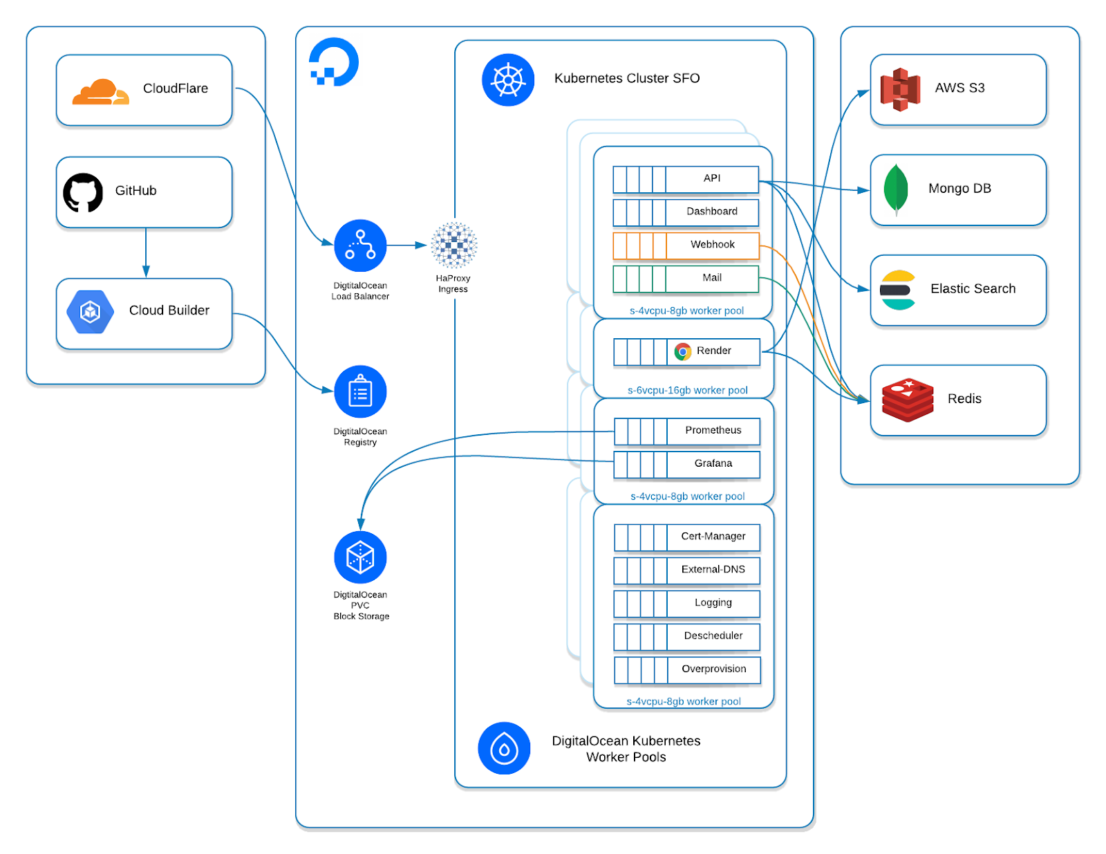 Urlbox now utilizes several different Node.js microservices, all of which run on DigitalOcean Kubernetes: